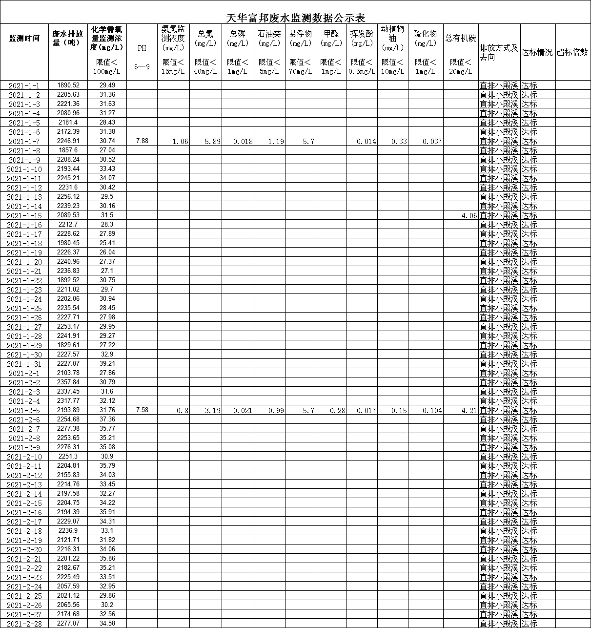 四川天華富邦化工有限責任公司1月2月廢水監(jiān)測數(shù)據(jù)公示