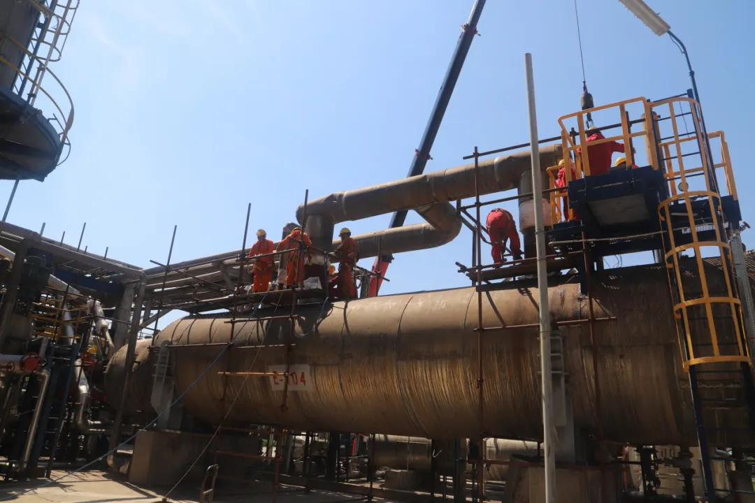 8月8日,集團對供熱裝置2號爐及尿素裝置高壓甲銨冷凝器進行搶修