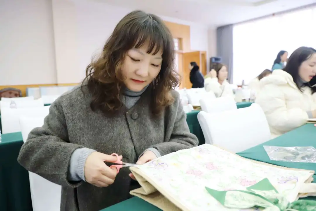 隨后,活動進入巧手慧心·女工創藝”DIY手工制作環節。女職工們在帆布袋上盡情揮灑創意。她們或低頭思考,或相互交流,一個個色彩斑斕、獨具特色的手繪布袋在她們手中逐漸成形。女職工們的臉上洋溢著喜悅和自豪,更體現了對生活的熱愛和追求。